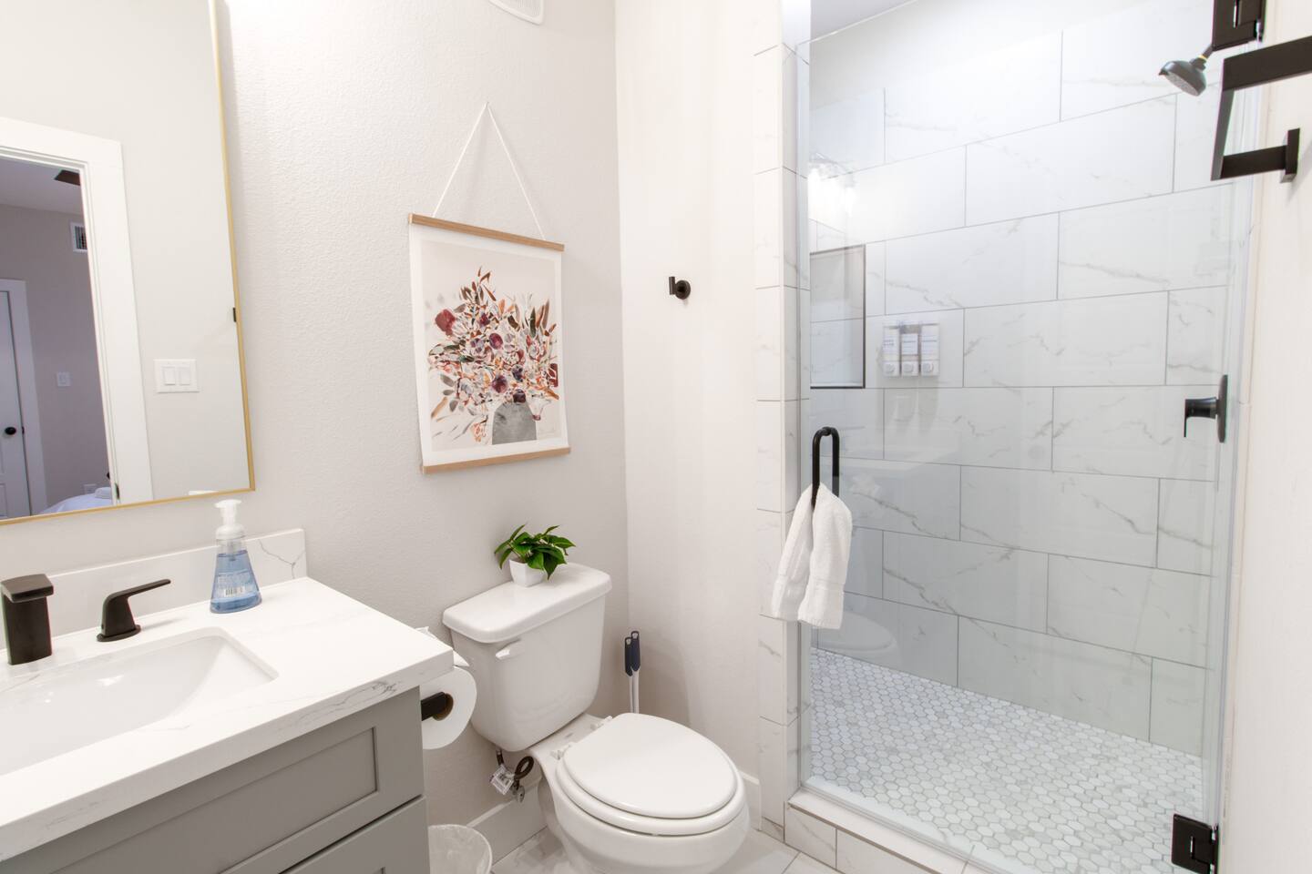 Welcome to our luxurious 8-bedroom retreat, a dual-home property designed for large groups, corporate stays, and special gatherings. With spacious interiors, 4 private suites, 10 bathrooms, and premium amenities, this modern getaway offers comfort, style, and convenience just minutes from Downtown Houston and top attractions. 🛏 Spacious Bedrooms & Private En-Suites ✔ 8 Bedrooms | 10 Bathrooms – Each bedroom has its own private en-suite bathroom for ultimate comfort ✔ Walk-In Closets – Plenty of storage for extended stays ✔ Full-Length Mirrors – Perfect for getting ready in style ✔ 32” Smart TVs – Stream your favorite shows in every bedroom ✔ Charging Stations – Stay powered up 🍽 Fully Equipped Kitchens & Dining ✔ Coffee Bar – Start your day with a fresh brew ✔ Chef’s Kitchen – Stocked with modern appliances, cookware & utensils ✔ Spacious Dining Areas – Large tables for family-style meals & corporate meetings 🛁 Laundry & Cleaning Convenience ✔ Full-Sized Washer & Dryer – Located in a dedicated laundry room for easy use ✔ Iron & Steamer – Stay crisp and fresh for any occasion ✔ Starter Essentials – Laundry detergent, dish soap, and cleaning supplies provided 🔐 Hassle-Free Smart Features ✔ Smart Locks for Self-Check-In – Convenient keyless entry for a seamless arrival ✔ High-Speed Wi-Fi & Multiple Smart TVs – Stay connected & entertained ✔ Dedicated Workspaces – Ideal for remote work and business travelers 🌿 Private Outdoor Oasis ✔ Furnished Patio with Grill – Host outdoor dinners & cookouts ✔ Fire Pit Lounge – Gather around for evening conversations under the stars ✔ Outdoor Games – Enjoy cornhole, pickleball, and more 🏀 Neighborhood Park & Recreation ✔ Community Pool – Cool off and relax just minutes away ✔ Pickleball & Basketball Courts – Enjoy active fun with family & friends ✔ Scenic Walking Trails & Green Space – Perfect for morning strolls or exercise 🚗 Hassle-Free Parking & Prime Location ✔ Free On-Site Parking – Plenty of space for multiple vehicles ✔ Minutes from Houston’s Top Attractions: 10 Min – Minute Maid Park (Astros Games ⚾) 12 Min – Downtown Houston (Dining, Museums & Nightlife) 15 Min – Texas Medical Center 17 Min – NRG Stadium (Texans Games 🏈, Rodeo 🤠, Concerts 🎶) ✨ Perfect For: ✔ Family Reunions & Friends' Getaways ✔ Corporate Retreats & Business Stays ✔ Engagement Celebrations & Wellness Retreats ✔ Seasonal Gatherings & Special Events 📍 Book now and experience Houston’s finest in luxury, comfort, and convenience! 🚀